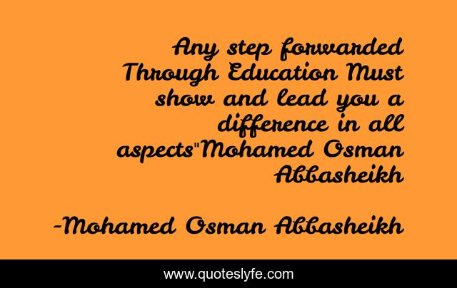 "Mohamed Osman Abbasheikh Quotes." Quoteslyfe.com, 2025. Fri. 05 Dec. 2025. <https://www.quoteslyfe.com/quote/Any-step-forwarded-Through-Education-Must-show-33876>.