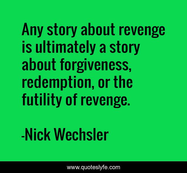 This page presents the quote "Any story about revenge is ultimately a story about forgiveness, redemption, or the futility of revenge.". Author of this quote is Nick Wechsler. This quote is about story, revenge, redemption,.
