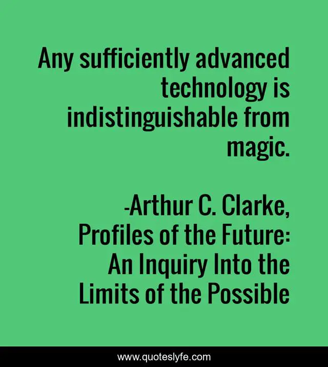 "Arthur C. Clarke, Profiles of the Future: An Inquiry Into the Limits of the Possible Quotes." Quoteslyfe.com, 2025. Fri. 05 Dec. 2025. <https://www.quoteslyfe.com/quote/Any-sufficiently-advanced-technology-is-indistinguishable-from-41696>.
