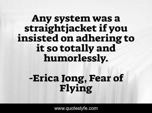 This page presents the quote "Any system was a straightjacket if you insisted on adhering to it so totally and humorlessly.". Author of this quote is Erica Jong, Fear of Flying. This quote is about politics, systems, religions,.