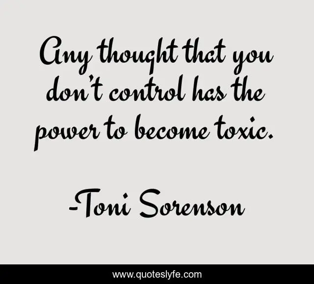 This page presents the quote "Any thought that you don’t control has the power to become toxic.". Author of this quote is Toni Sorenson. This quote is about thought, brain,.
