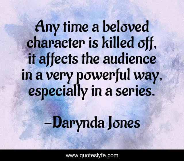 This page presents the quote "Any time a beloved character is killed off, it affects the audience in a very powerful way, especially in a series.". Author of this quote is Darynda Jones. .