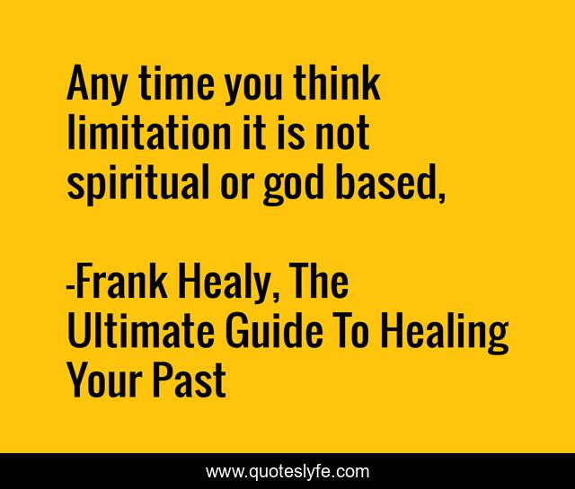 This page presents the quote "Any time you think limitation it is not spiritual or god based, ". Author of this quote is Frank Healy, The Ultimate Guide To Healing Your Past. This quote is about potential-for-greatness, spiritual-growth, spiritual-wisdom, potential-of-your-own-mind, self-esteem,.