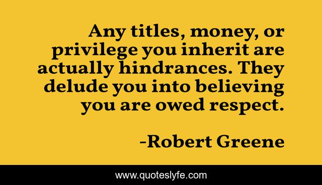 This page presents the quote "Any titles, money, or privilege you inherit are actually hindrances. They delude you into believing you are owed respect.". Author of this quote is Robert Greene. This quote is about respect, delusion,.
