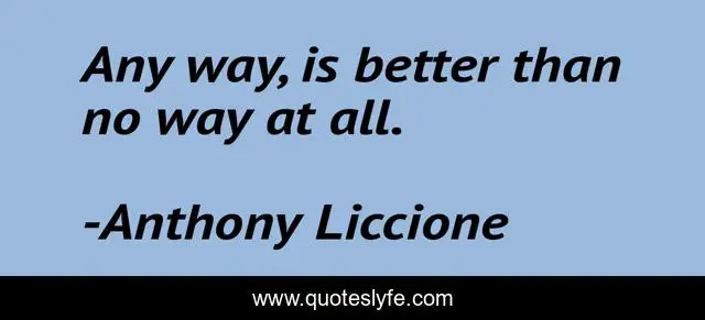 "Anthony Liccione Quotes." Quoteslyfe.com, 2025. Sat. 06 Dec. 2025. <https://www.quoteslyfe.com/quote/Any-way-is-better-than-no-way-240355>.