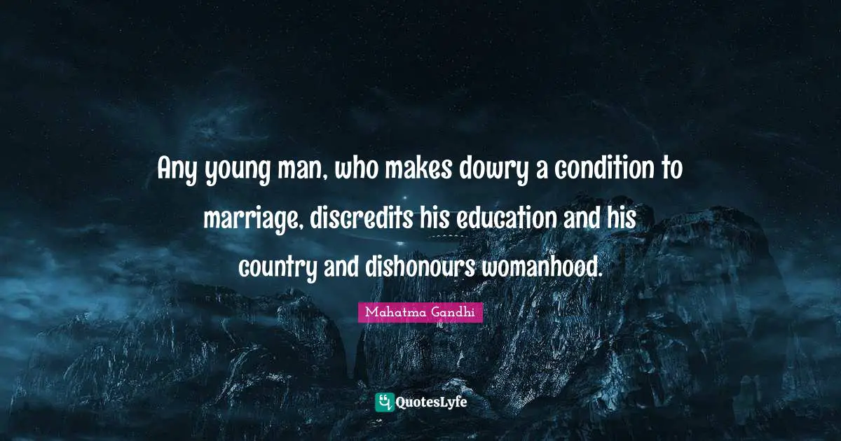 "Mahatma Gandhi Quotes." Quoteslyfe.com, 2025. Mon. 29 Dec. 2025. <https://www.quoteslyfe.com/quote/Any-young-man-who-makes-dowry-a-838154>.