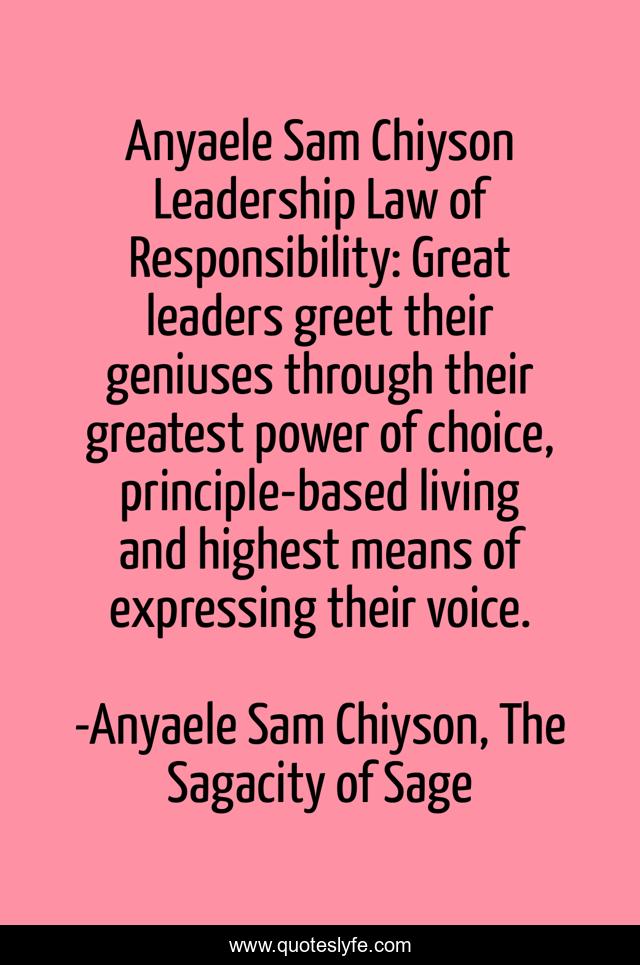 Anyaele Sam Chiyson Leadership Law of Responsibility: Great leaders greet their geniuses through their greatest power of choice, principle-based living and highest means of expressing their voice.