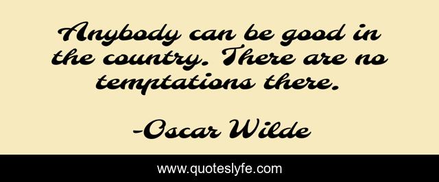 This page presents the quote "Anybody can be good in the country. There are no temptations there.". Author of this quote is Oscar Wilde. This quote is about city, country,.