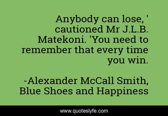 "Alexander McCall Smith, Blue Shoes and Happiness Quotes." Quoteslyfe.com, 2025. Fri. 05 Dec. 2025. <https://www.quoteslyfe.com/quote/Anybody-can-lose-cautioned-Mr-J-L-249535>.