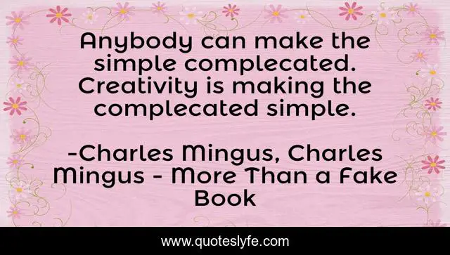 "Charles Mingus, Charles Mingus - More Than a Fake Book Quotes." Quoteslyfe.com, 2025. Fri. 05 Dec. 2025. <https://www.quoteslyfe.com/quote/Anybody-can-make-the-simple-complecated-Creativity-14421>.