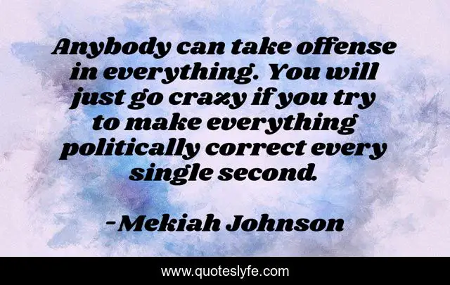 This page presents the quote "Anybody can take offense in everything. You will just go crazy if you try to make everything politically correct every single second.". Author of this quote is Mekiah Johnson. This quote is about offense, politically-correct, taking-offense-too-much, quote, quotes,.