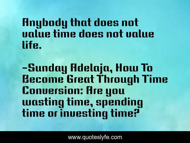 "Sunday Adelaja, How To Become Great Through Time Conversion: Are you wasting time, spending time or investing time? Quotes." Quoteslyfe.com, 2025. Fri. 05 Dec. 2025. <https://www.quoteslyfe.com/quote/Anybody-that-does-not-value-time-does-71221>.