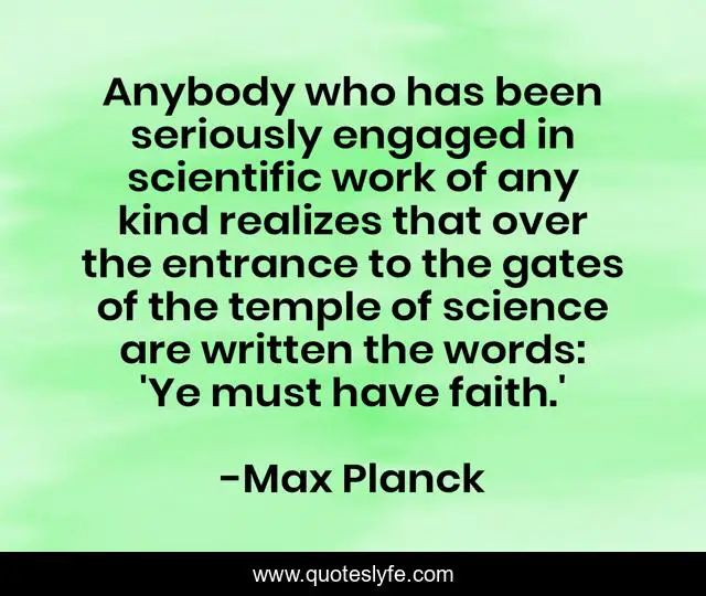 This page presents the quote "Anybody who has been seriously engaged in scientific work of any kind realizes that over the entrance to the gates of the temple of science are written the words: 'Ye must have faith.'". Author of this quote is Max Planck. This quote is about faith, words, science,.
