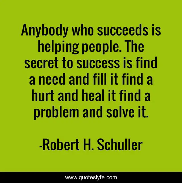 Anybody who succeeds is helping people. The secret to success is find a need and fill it find a hurt and heal it find a problem and solve it.