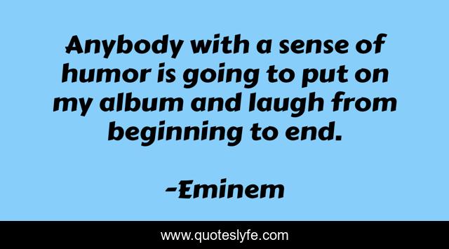 This page presents the quote "Anybody with a sense of humor is going to put on my album and laugh from beginning to end.". Author of this quote is Eminem. This quote is about beginning, end, laugh,.
