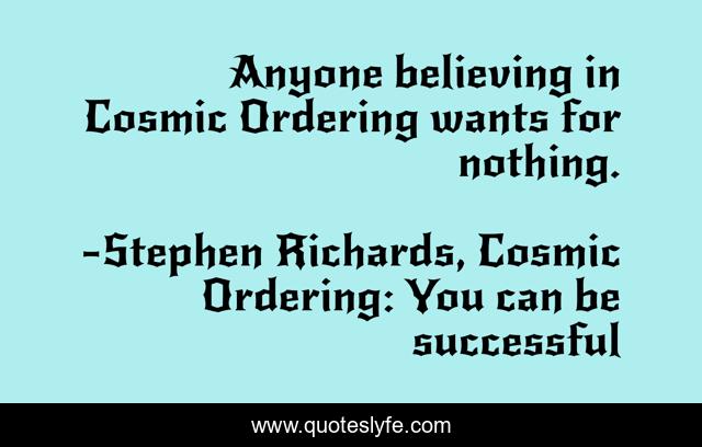 "Stephen Richards, Cosmic Ordering: You can be successful Quotes." Quoteslyfe.com, 2025. Fri. 05 Dec. 2025. <https://www.quoteslyfe.com/quote/Anyone-believing-in-Cosmic-Ordering-wants-for-16906>.