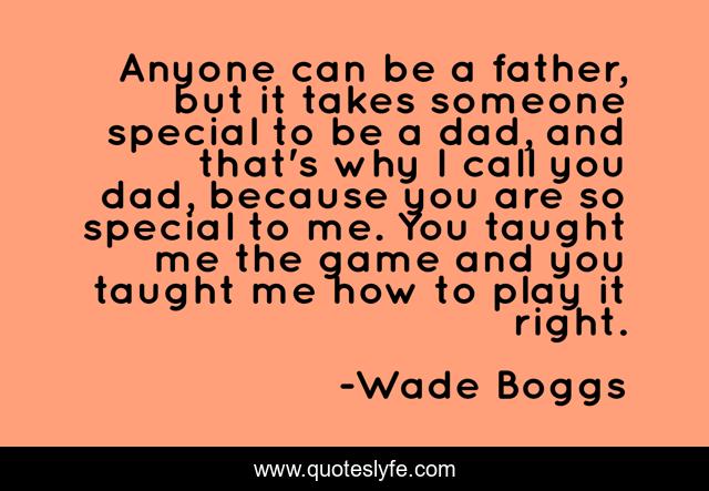 This page presents the quote "Anyone can be a father, but it takes someone special to be a dad, and that's why I call you dad, because you are so special to me. You taught me the game and you taught me how to play it right.". Author of this quote is Wade Boggs. This quote is about me, game, father,.