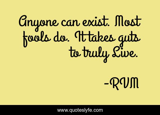 This page presents the quote "Anyone can exist. Most fools do. It takes guts to truly Live.". Author of this quote is RVM. This quote is about motivation, inspiration,.