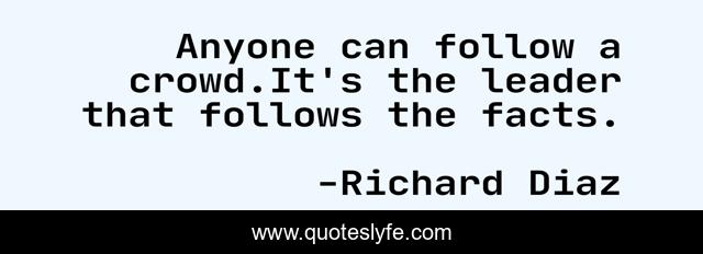 This page presents the quote "Anyone can follow a crowd.It's the leader that follows the facts.". Author of this quote is Richard Diaz. This quote is about follower, leadership,.