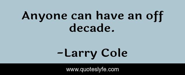 "Larry Cole Quotes." Quoteslyfe.com, 2025. Fri. 05 Dec. 2025. <https://www.quoteslyfe.com/quote/Anyone-can-have-an-off-decade-273501>.