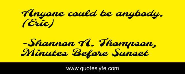 "Shannon A. Thompson, Minutes Before Sunset Quotes." Quoteslyfe.com, 2025. Fri. 05 Dec. 2025. <https://www.quoteslyfe.com/quote/Anyone-could-be-anybody-Eric-101316>.