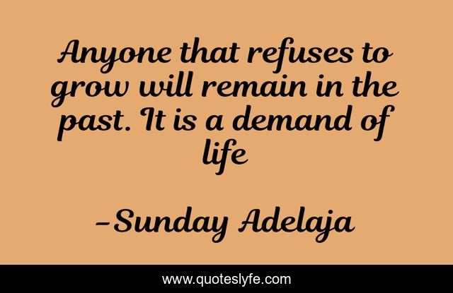 This page presents the quote "Anyone that refuses to grow will remain in the past. It is a demand of life". Author of this quote is Sunday Adelaja. This quote is about anyone, past, refuses, grow, demand,.