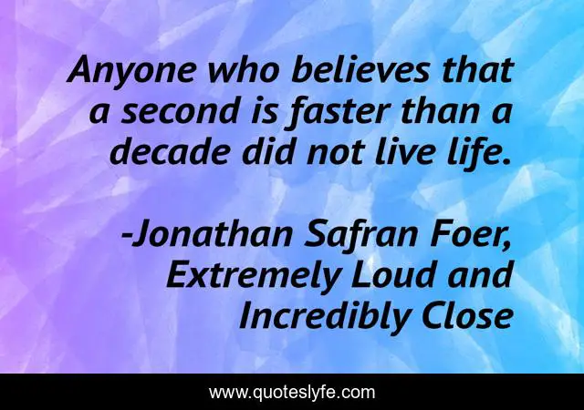 This page presents the quote "Anyone who believes that a second is faster than a decade did not live life.". Author of this quote is Jonathan Safran Foer, Extremely Loud and Incredibly Close. This quote is about life, live-life, time,.