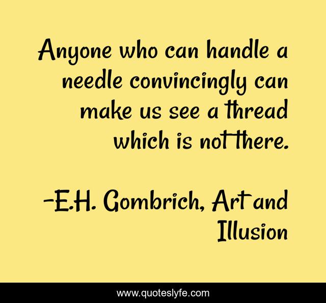 This page presents the quote "Anyone who can handle a needle convincingly can make us see a thread which is not there.". Author of this quote is E.H. Gombrich, Art and Illusion. .