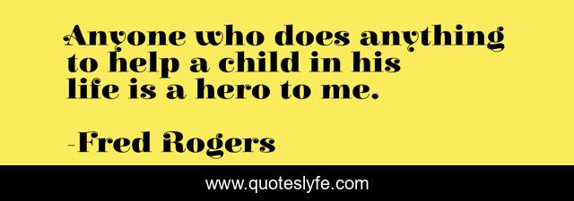 This page presents the quote "Anyone who does anything to help a child in his life is a hero to me.". Author of this quote is Fred Rogers. This quote is about heroes, heroism, children,.