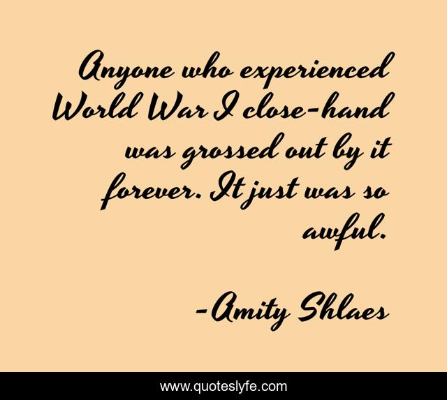 This page presents the quote "Anyone who experienced World War I close-hand was grossed out by it forever. It just was so awful.". Author of this quote is Amity Shlaes. This quote is about world war i, world, forever,.