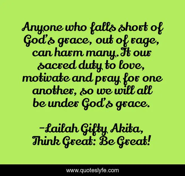 "Lailah Gifty Akita, Think Great: Be Great! Quotes." Quoteslyfe.com, 2025. Tue. 09 Dec. 2025. <https://www.quoteslyfe.com/quote/Anyone-who-falls-short-of-God-s-62574>.