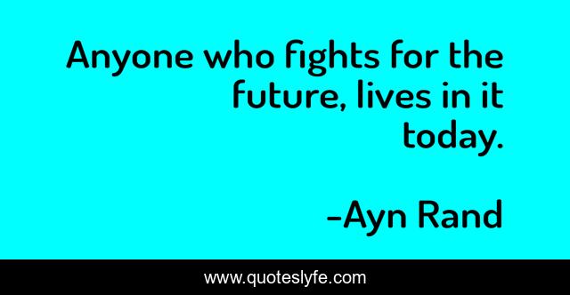 This page presents the quote "Anyone who fights for the future, lives in it today.". Author of this quote is Ayn Rand. This quote is about idealism, philosophy,.