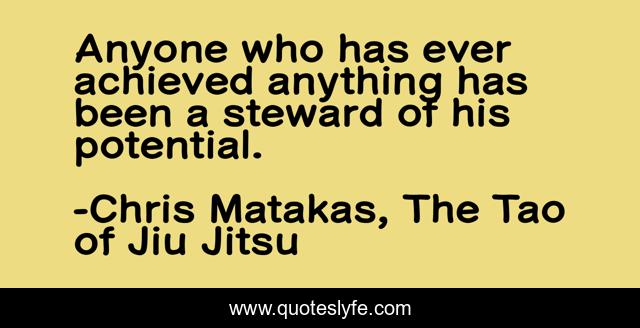 This page presents the quote "Anyone who has ever achieved anything has been a steward of his potential.". Author of this quote is Chris Matakas, The Tao of Jiu Jitsu. This quote is about discipline, habits, potential, steward,.