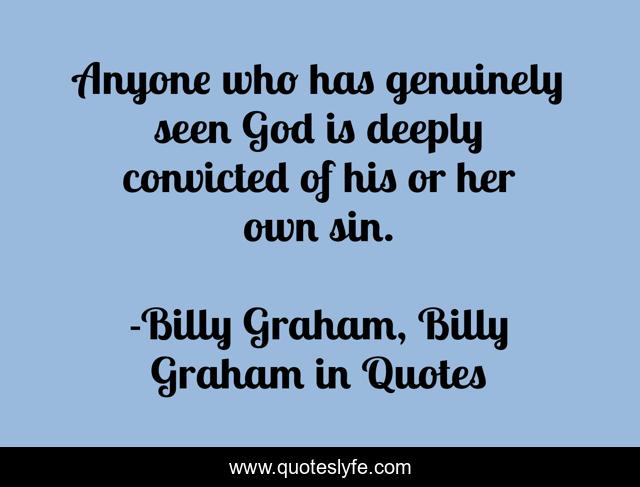 This page presents the quote "Anyone who has genuinely seen God is deeply convicted of his or her own sin.". Author of this quote is Billy Graham, Billy Graham in Quotes. This quote is about god, sin, conviction, billy-graham,.