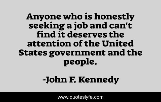 This page presents the quote "Anyone who is honestly seeking a job and can't find it deserves the attention of the United States government and the people.". Author of this quote is John F. Kennedy. .