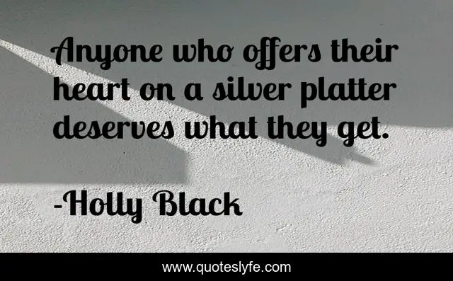 This page presents the quote "Anyone who offers their heart on a silver platter deserves what they get.". Author of this quote is Holly Black. This quote is about deserve, heart,.