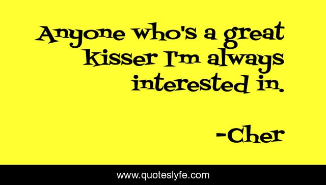 This page presents the quote "Anyone who's a great kisser I'm always interested in.". Author of this quote is Cher. .