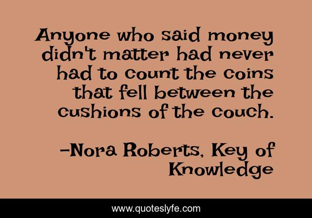 This page presents the quote "Anyone who said money didn't matter had never had to count the coins that fell between the cushions of the couch.". Author of this quote is Nora Roberts, Key of Knowledge. This quote is about money, poverty, money-problems,.