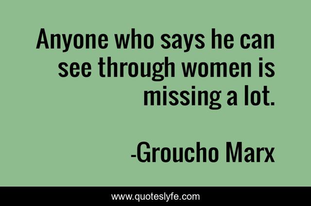 This page presents the quote "Anyone who says he can see through women is missing a lot.". Author of this quote is Groucho Marx. This quote is about innuendo, funny, comedy,.