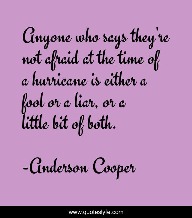 This page presents the quote "Anyone who says they're not afraid at the time of a hurricane is either a fool or a liar, or a little bit of both.". Author of this quote is Anderson Cooper. This quote is about fool, little, liar,.