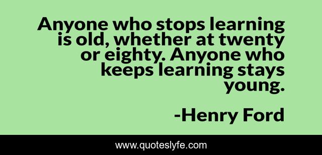 This page presents the quote "Anyone who stops learning is old, whether at twenty or eighty. Anyone who keeps learning stays young.". Author of this quote is Henry Ford. This quote is about lifelong-learning, education,.