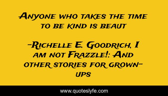 This page presents the quote "Anyone who takes the time to be kind is beaut". Author of this quote is Richelle E. Goodrich, I am not Frazzle!: And other stories for grown-ups. This quote is about beautiful, kind, kindness, beauty, ugh,.