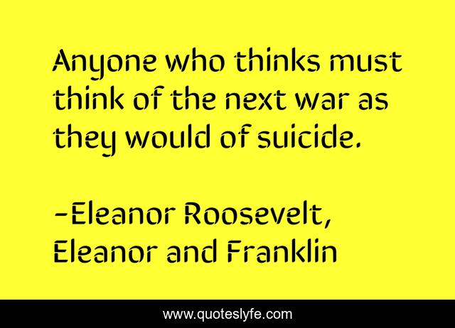 This page presents the quote "Anyone who thinks must think of the next war as they would of suicide.". Author of this quote is Eleanor Roosevelt, Eleanor and Franklin. This quote is about anti-war, war,.