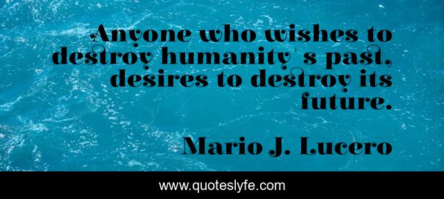 This page presents the quote "Anyone who wishes to destroy humanity's past, desires to destroy its future.". Author of this quote is Mario J. Lucero. This quote is about past, present, history,.