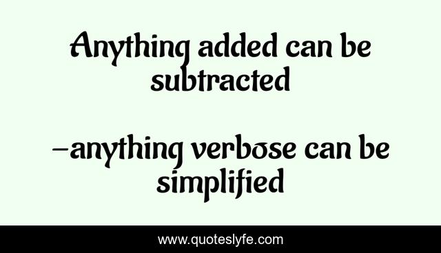 "anything verbose can be simplified Quotes." Quoteslyfe.com, 2025. Fri. 05 Dec. 2025. <https://www.quoteslyfe.com/quote/Anything-added-can-be-subtracted-227046>.