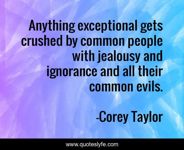This page presents the quote "Anything exceptional gets crushed by common people with jealousy and ignorance and all their common evils.". Author of this quote is Corey Taylor. This quote is about slipknot, society, music, humanity,.
