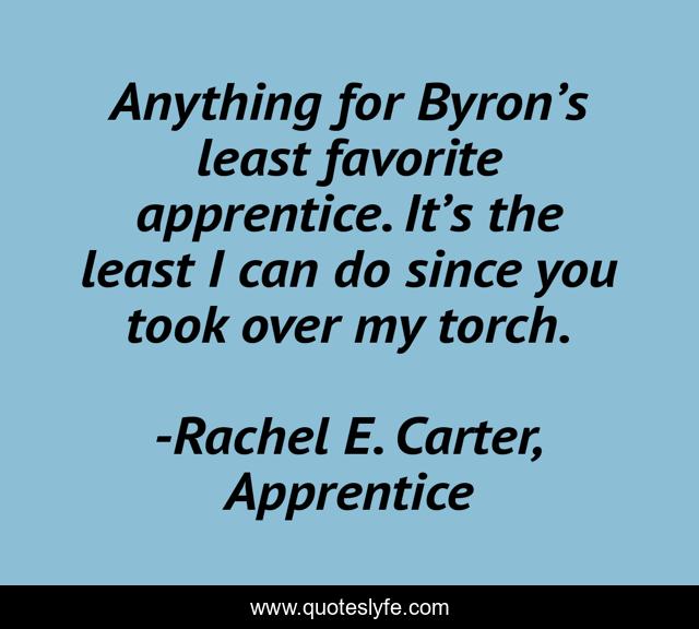 "Rachel E. Carter, Apprentice Quotes." Quoteslyfe.com, 2025. Fri. 05 Dec. 2025. <https://www.quoteslyfe.com/quote/Anything-for-Byron-s-least-favorite-apprentice-18705>.