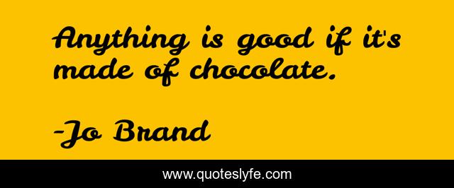 This page presents the quote "Anything is good if it's made of chocolate.". Author of this quote is Jo Brand. This quote is about food, chocolate,.