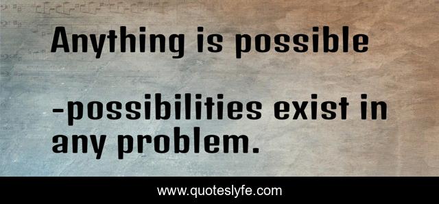This page presents the quote "Anything is possible". Author of this quote is possibilities exist in any problem.. .