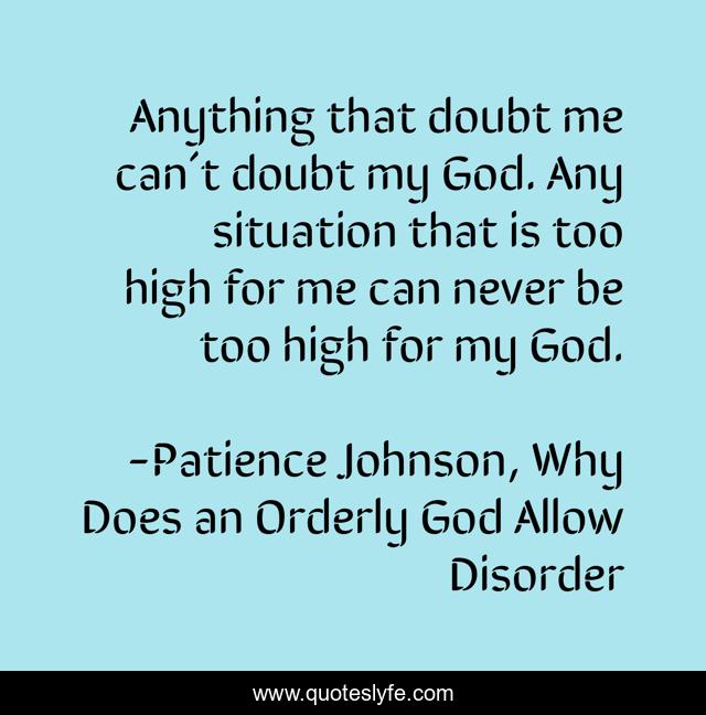 "Patience Johnson, Why Does an Orderly God Allow Disorder Quotes." Quoteslyfe.com, 2025. Sat. 06 Dec. 2025. <https://www.quoteslyfe.com/quote/Anything-that-doubt-me-can-t-doubt-45937>.